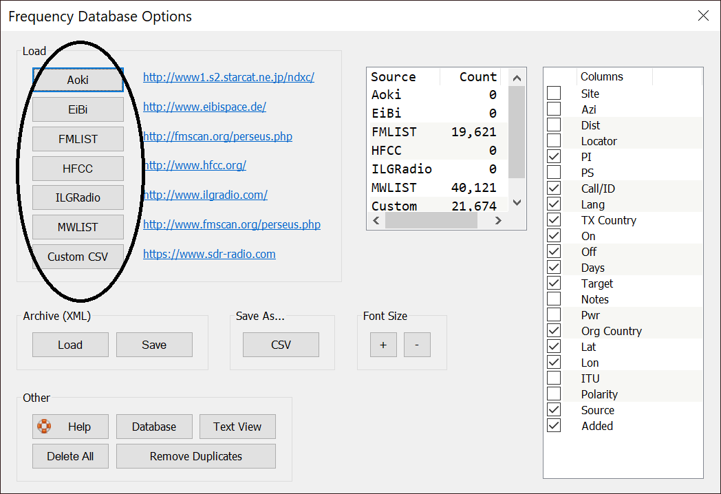 of seeing which, of the several, databases In "Frequency Database Options"), is