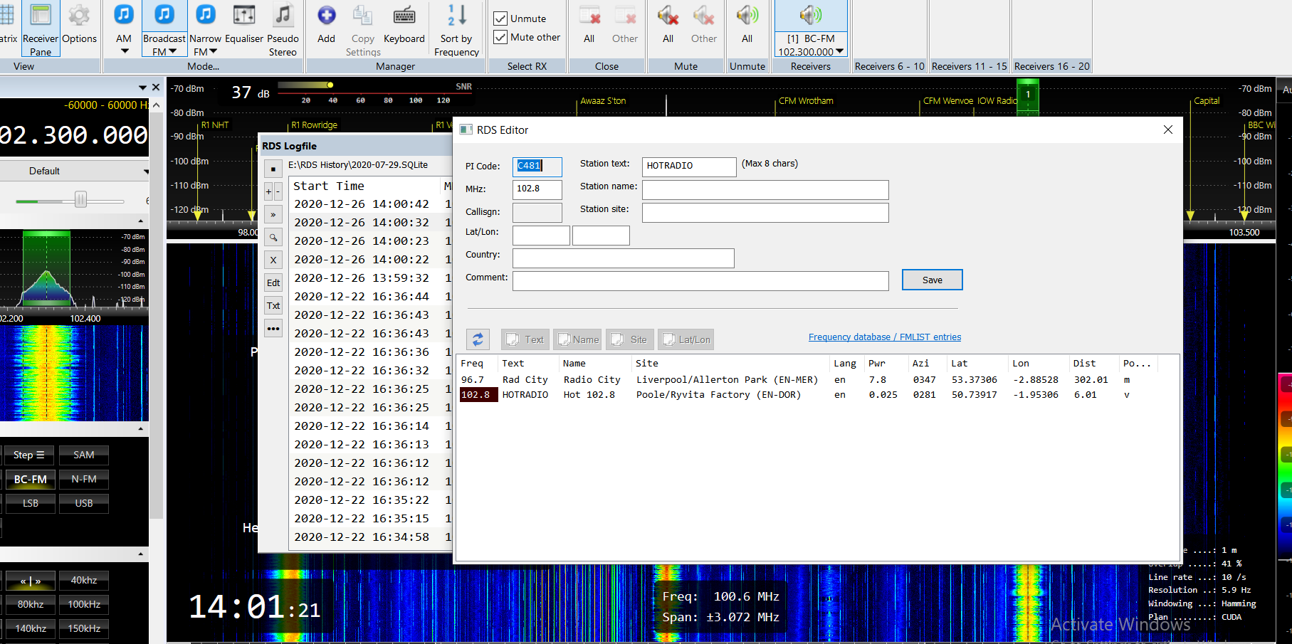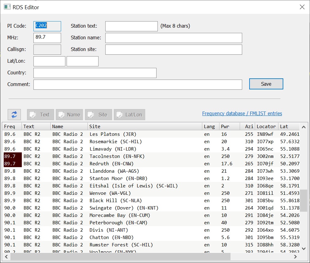 Double-clicking on an entry in the RDS database brings up possible matches with the Frequency Database - a really useful feature epecially during Es.
