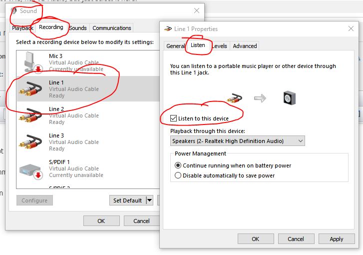 Then in Windows Audio settings, select "Listen" to be able to still hear the output in speakers: