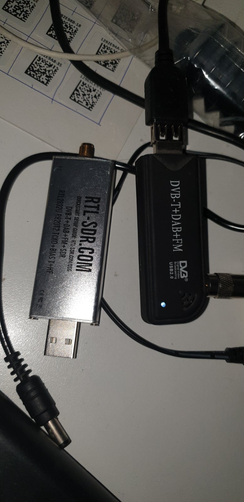 If the dongles are fakes they should work depending on how the software is written. Could you please capture a log with the silver one without the other one plugged in? I want to see if Simon's code reports the same tuner as the black one returned. The reported tuner bothers me. The gain selections offered also do not fit the expected R820T tuner selections.