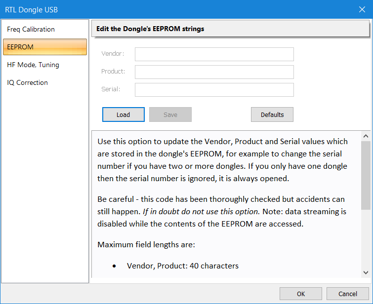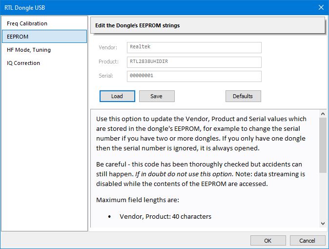 Well, the "Default" button seems to read what is already in the dongle. So you can select "Default" and then on the third line change the "serial number". That can, literally, be a sequence of any 8 bit characters as you want - no unicode even though it's saved internally as unicode. Go figure. For example I have one named "15" and another "RTLSDR 2". Keep it fairly short. 20 characters is safe. 80 might not be.