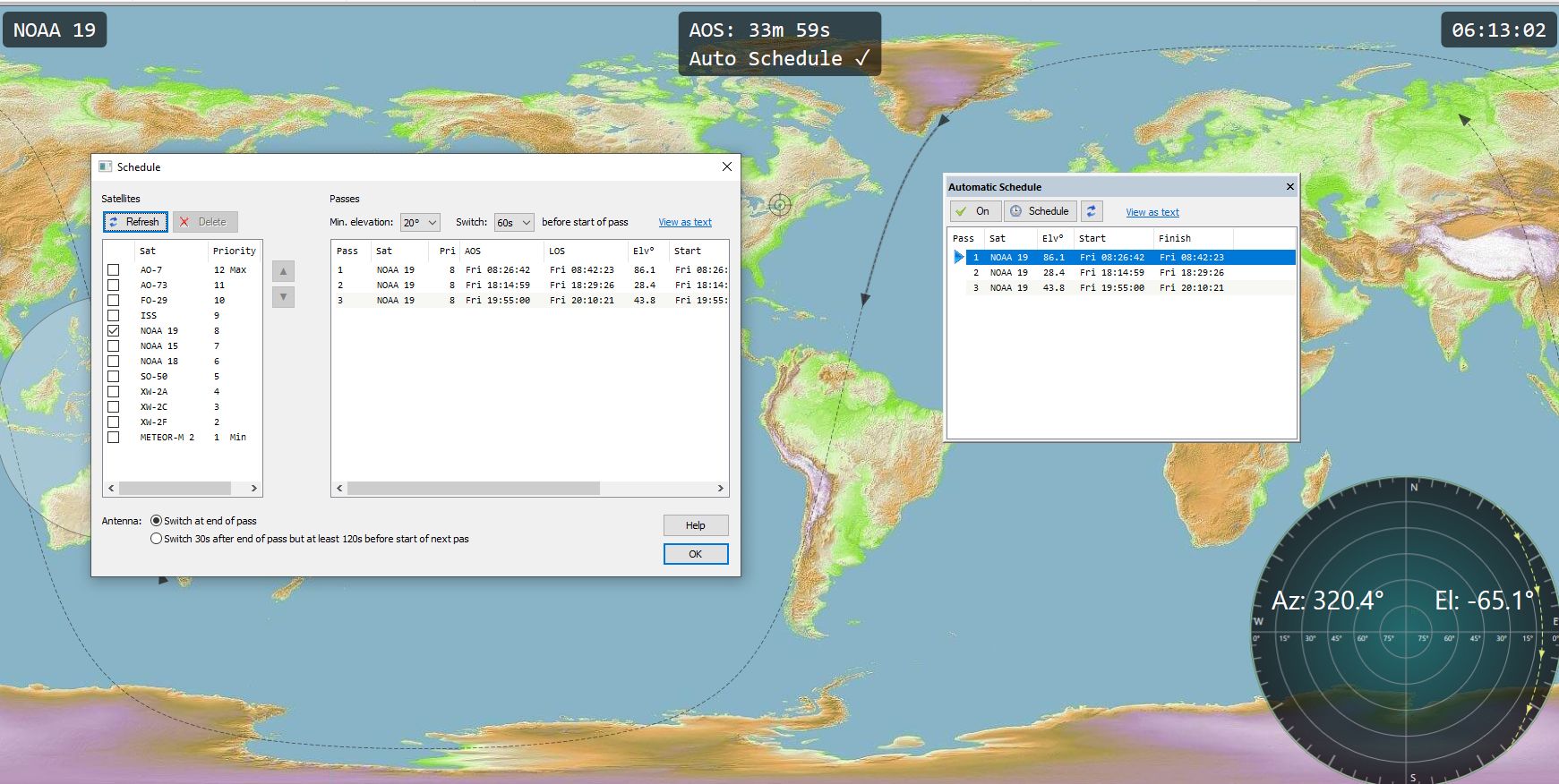 Thank you Simon. The "Min elev" works great. I tested it yesterday and today. It only records the passes with an elevation at or above the set elevation. I'll post a screenshot below showing the correct operation with NOAA 19. It did not record the earlier pass that was below the 20 degrees that I had set. Thanks again. I just made a £40.00 contribution for dog food.