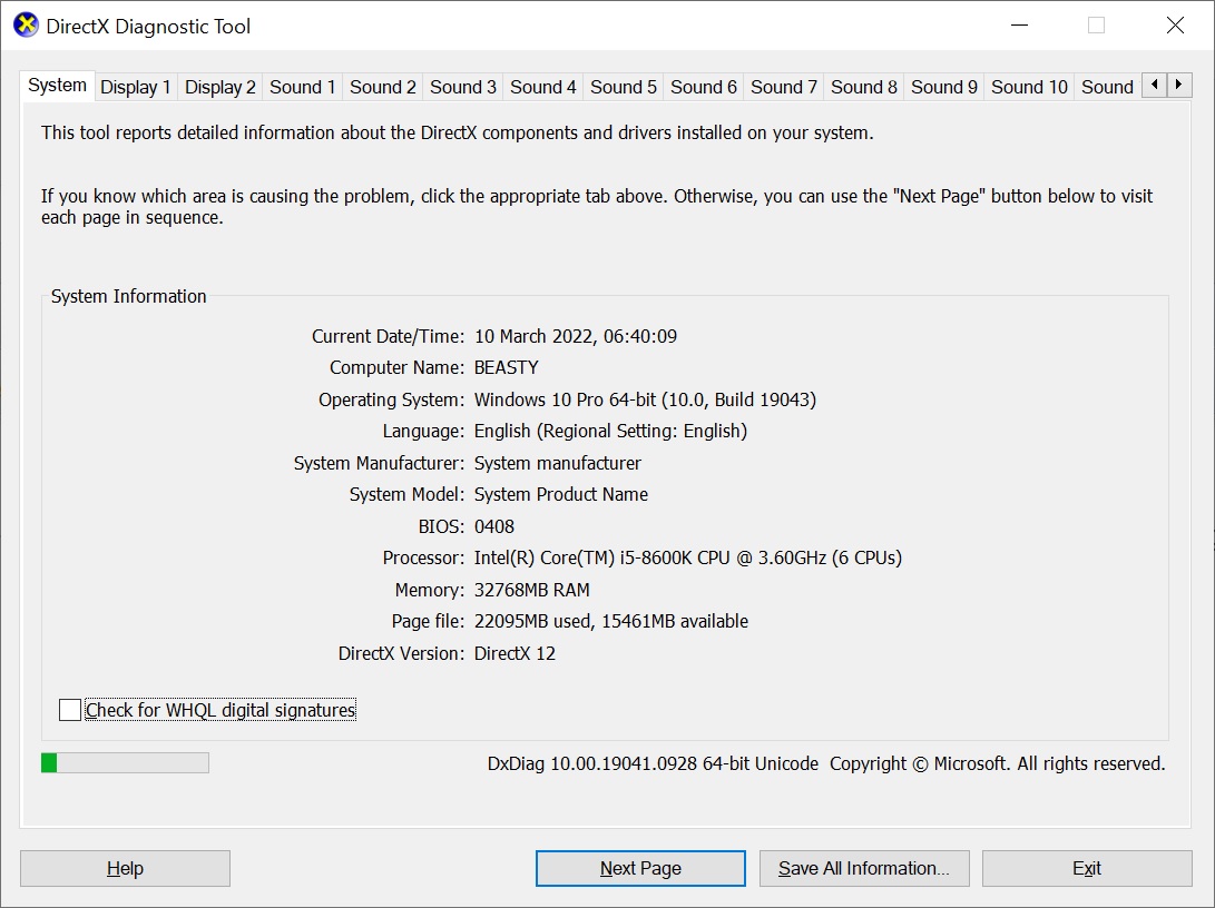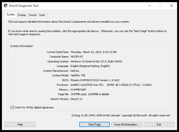 Now I need to know what version of DirectX you have: Run this program. I really want the first page. I see that an important DirectX function isn't working on your computer.