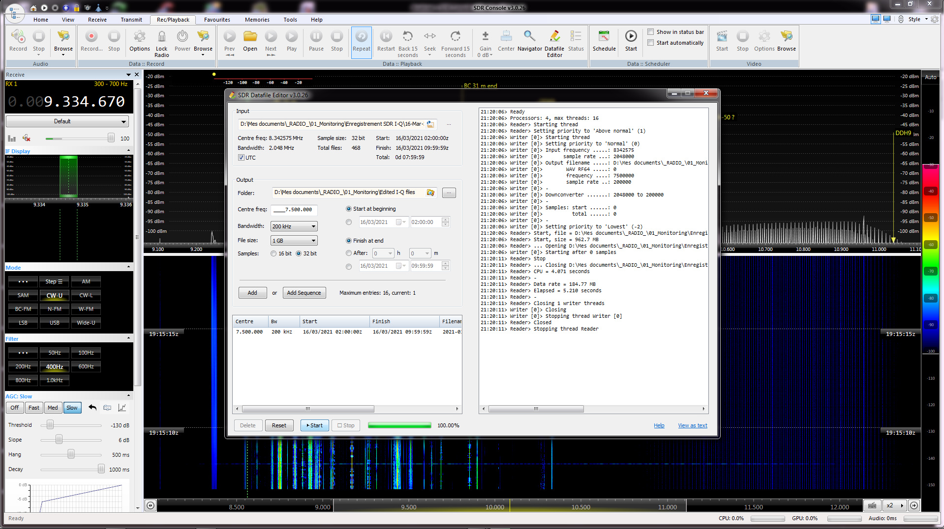 When editing a 46 Gb I/Q file (see "I-Q file_editing-#1") to extract a 200 kHz wide full lenght portion, the size of resulting file is less than 100Mb and the file covers a few minutes only of the original file (see "I-Q file_editing-#2").