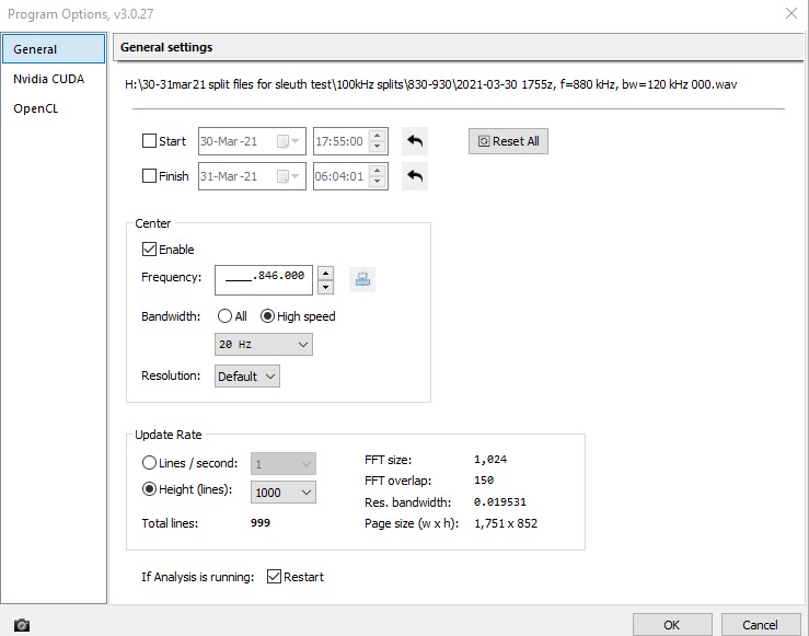 Data Analyser works perfectly on the 1st analysis of each session. But moving on to a new project results in an image which appears “noisy” and overlaid with hash. In order to get a clear image it’s necessary to close the Analyser window and re-open it from the main SDRC window.
