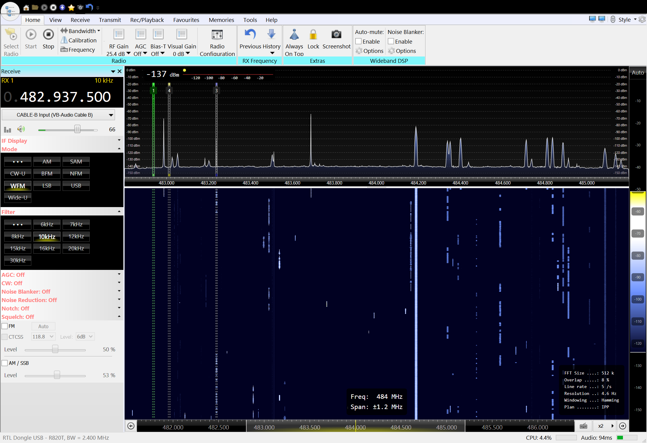 I thought that, given no decimation or other "tricks", maximum dynamic range is 20*log(2^(# of bits)) dB. So for an 8 bit RTL SDR the maximum dynamic range should be 48 dB. Yet I'm seeing upwards of 70 dB in the attached. The spectrum amplitude scale is relatively linear - I checked it against my HP8640B. AGC is off.