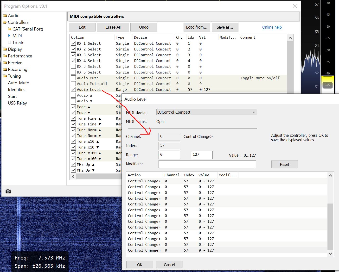 I've checked the settings in midi definitions file and they are set to a range of 0-127. NOTE: If I change the range to, say, 3-127 or 5-127, save and reboot SDR-C, they "stick" and I can then lower the AF Gain to either 3 or 5 as indicated on the RX Panel. Changing the range back to 0-127 and saving he definition file again, restarting SDR-C takes me back to where I started, only being able to lower the AF Gain down to "1", never "0".