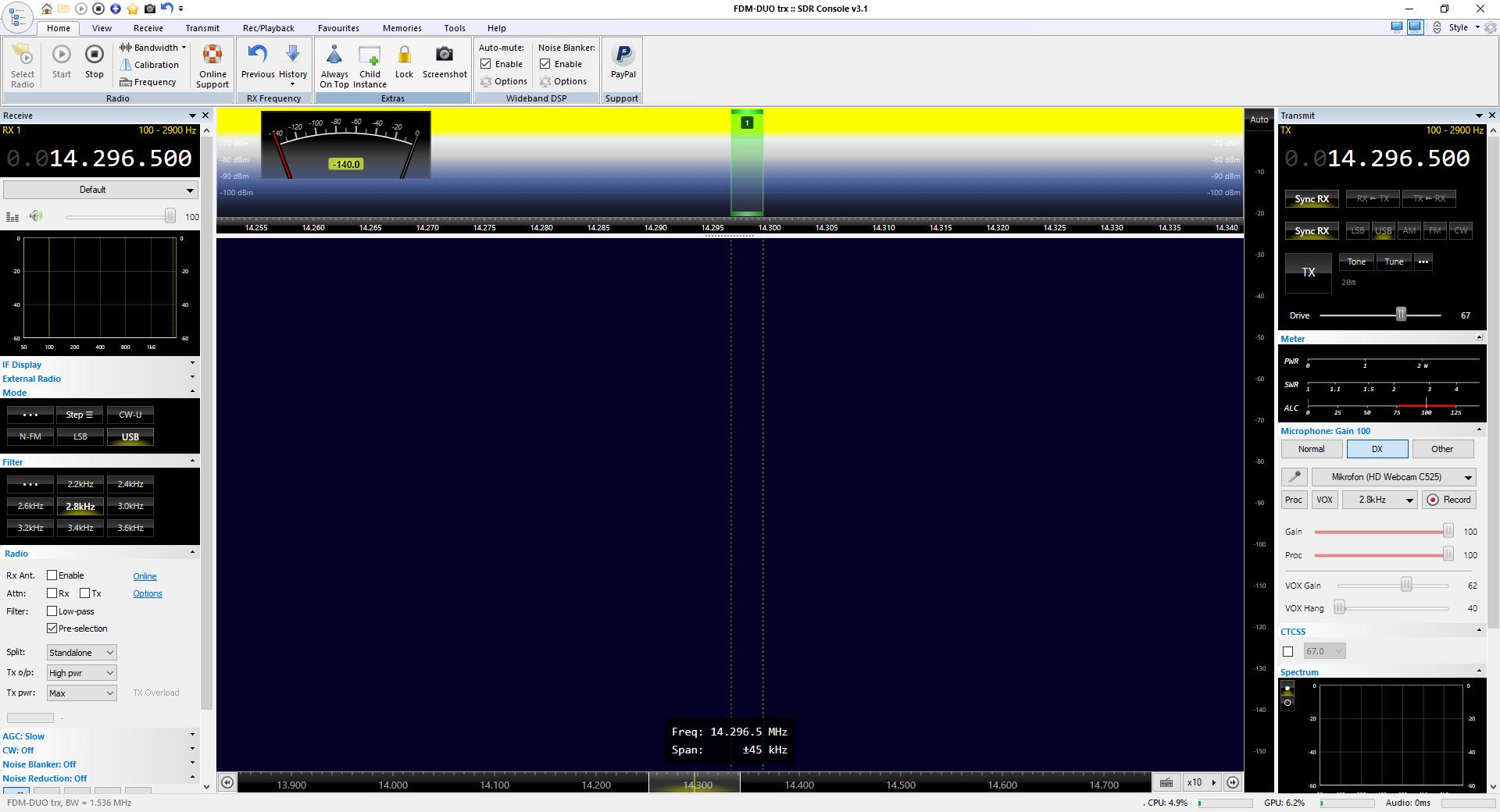 My first setup of SDR-Radio with FDM DUO. Most likely I am overlooking something in my configuration.