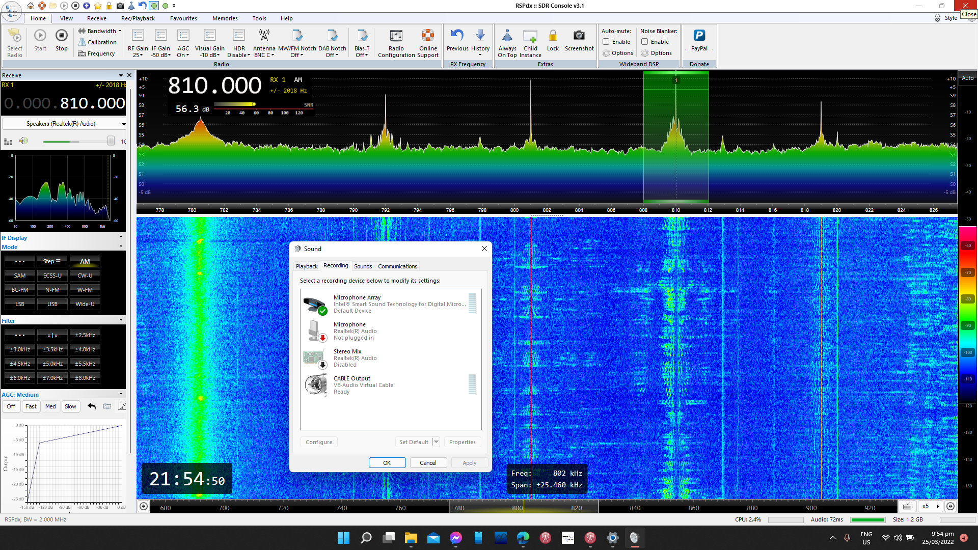 I have recently changed from a HP Pavillion which I've been using for 2 years without any issues, over to an Acer Swift 5. It is running Windows 11. I am running the latest beta version of SDR Console. I'm also using SDRuno but haven't had the problem with this.