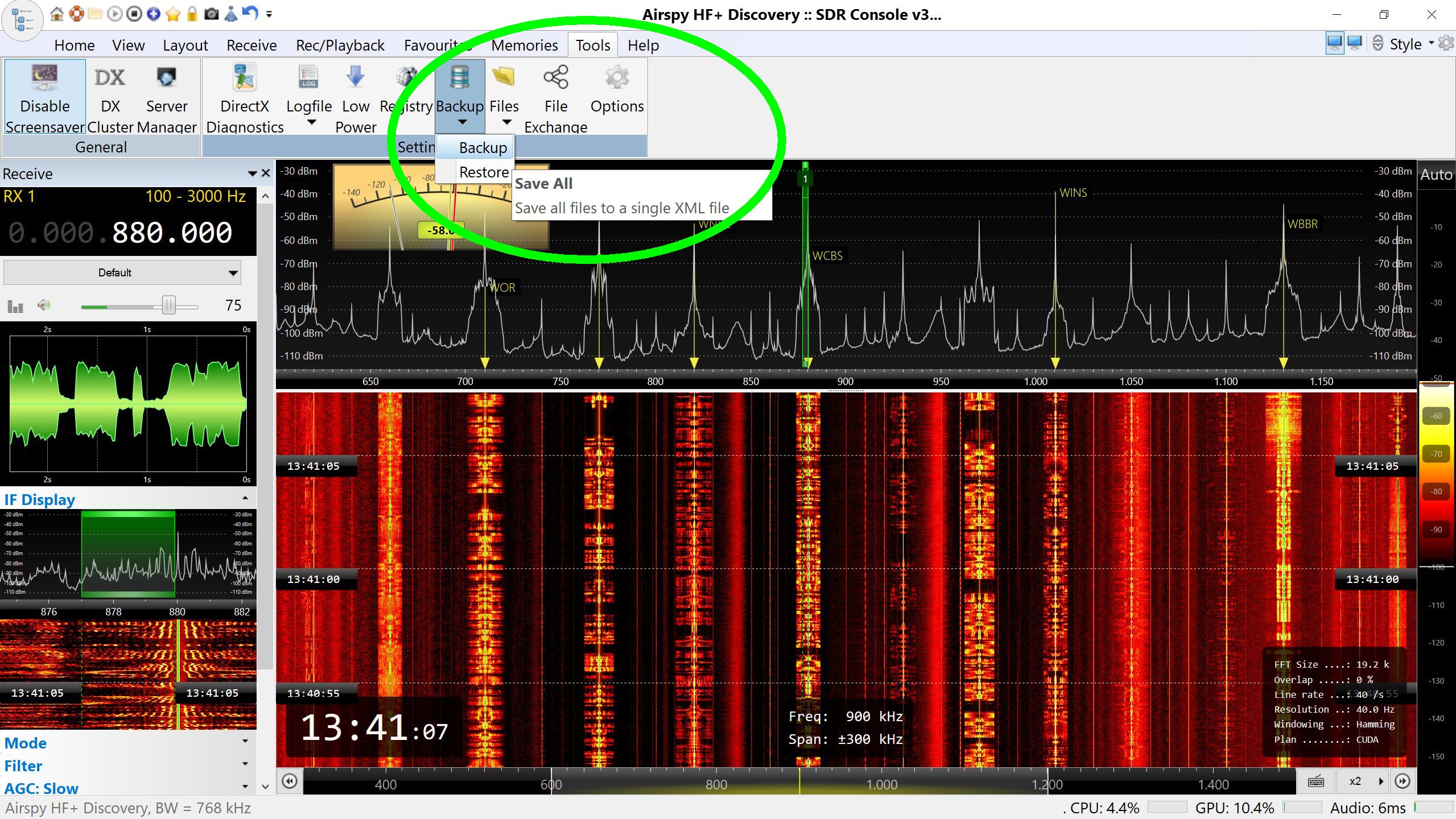 For this I also installed the current BETA on the notebook and got it running with the AirSpy.