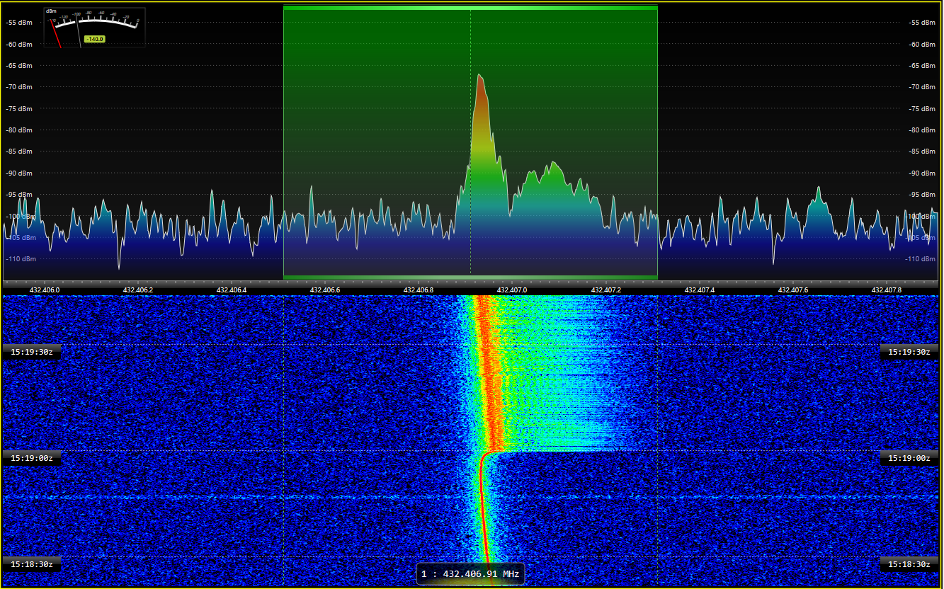 I then calibrated the RX-888 to a known frequency source, in this case the OZ7IGY 432 MHz beacon (controlled by a GPS locked reference).
