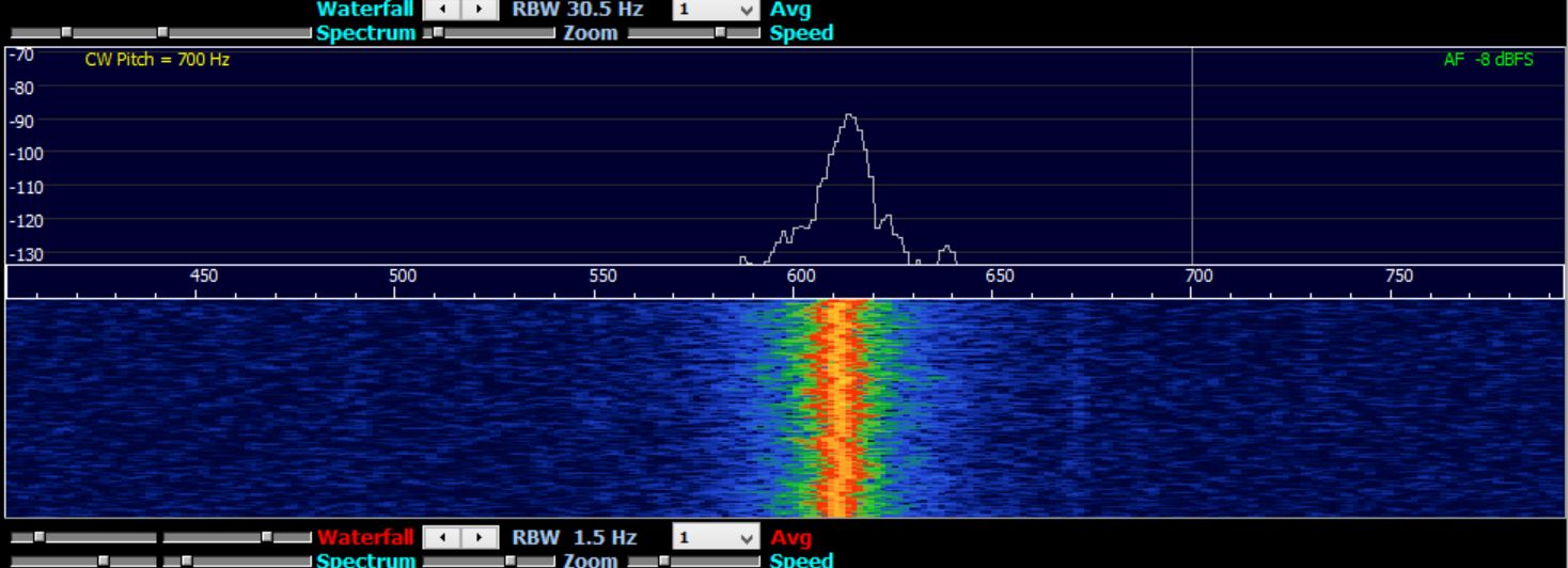 The RX-888 shows, as reported in the first posting, an initial drift after turn-on in room ambient to thermal equilibrium of about 3.4 ppm. On top of that is has an frequency jitter that can clearly be seen on the screenshots. It does not have a clean note when listened to via SDRC. Irritating already on 432 MHz and even worse on 1296 MHz. I can not recommend the RX-888 for any serious UHF HAM usage. It would work with FM but is not acceptable for CW or SSB. I have not noticed any disadvantages at VLF, LF, MF nor HF frequencies. The reason for the thermal frequency drift as well as the frequency jitter is likely to be the reference oscillator. The jitter could also origin from a phase locked loop that does not work as it should.