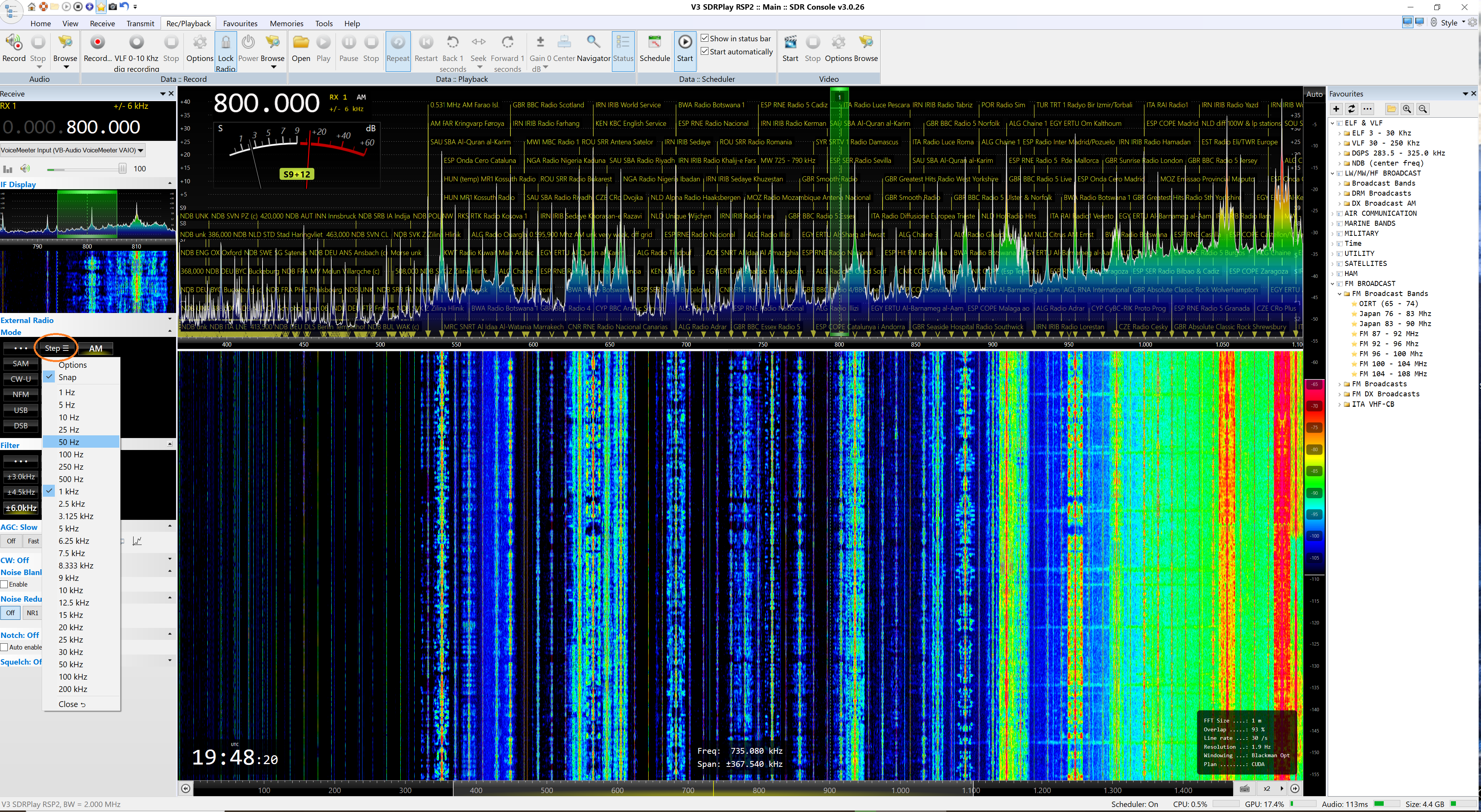 None of the screen capture tools I have will let me capture that, including the screenshot tool built into SDRC (the "Step" dropdown closes as soon as I try to take a screenshot), but mine looks identical to yours--"Snap" and "1 kHz" are checked.
