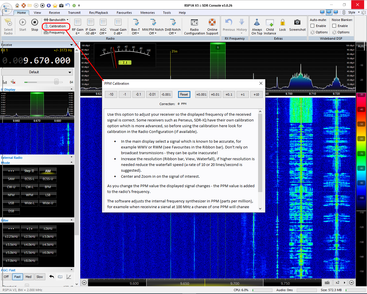 Start the RSP1 and in the Home tab click on Calibrate, then in the panel that opens make your adjustment.