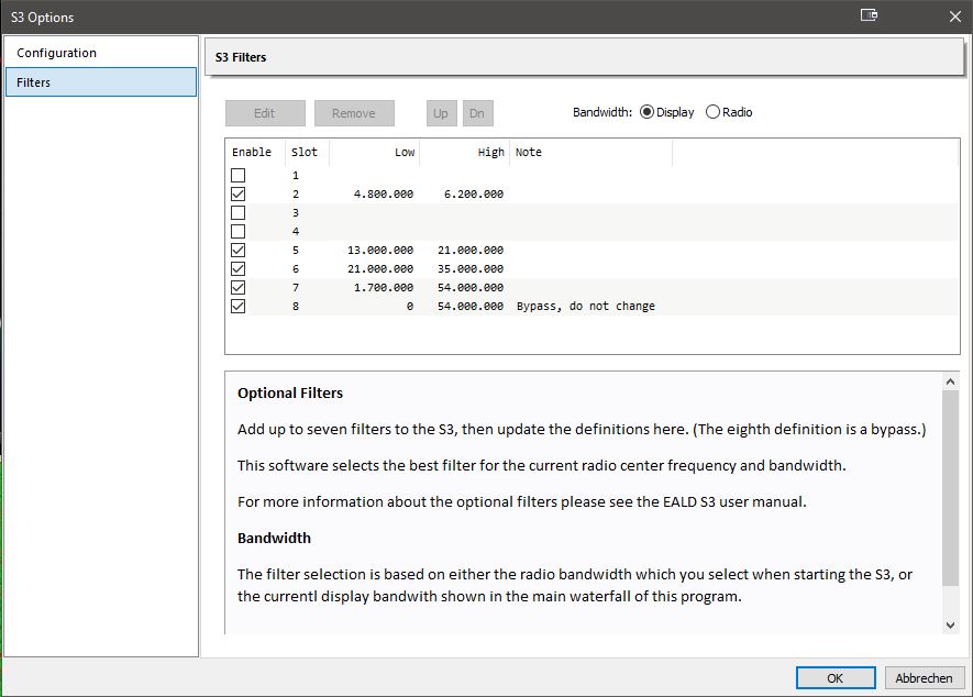 Re: ELAD FDM-S3 Bandpass Filter Configuration with V3