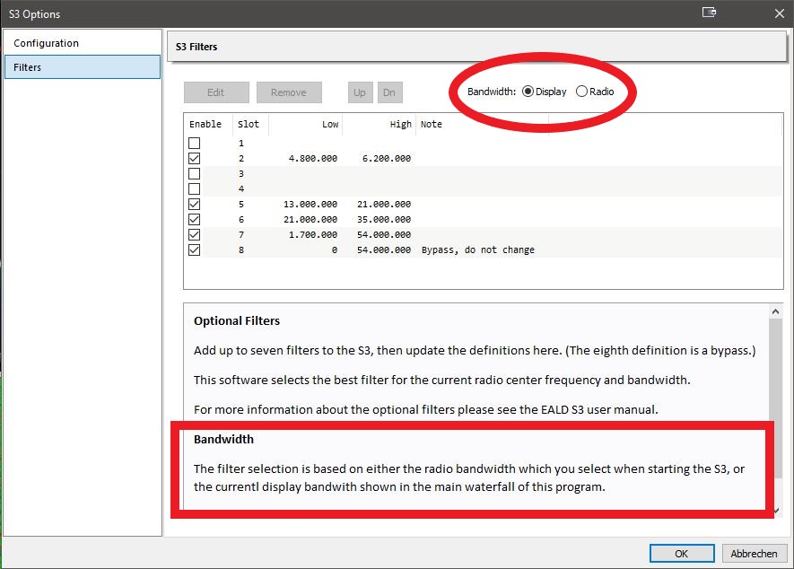 Since few days I have the S3 here. Now I have install following Bandpass and Highpass Filters. See below.