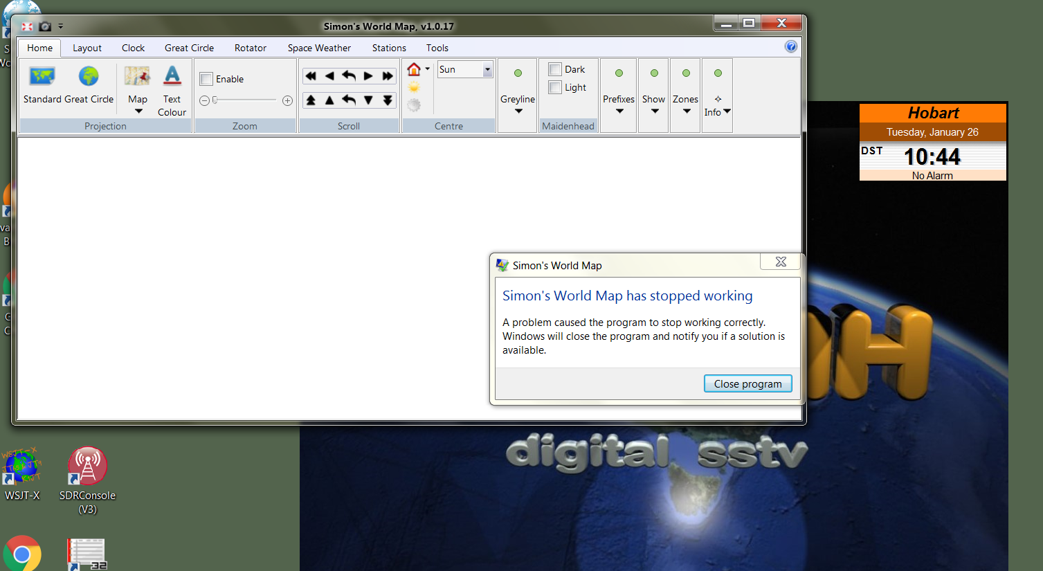 I have just downloaded and installed the world map program, all seems OK with the installation but when running the program Windows comes up with the message "Simons world map has stopped working a problem caused the program to stop working"