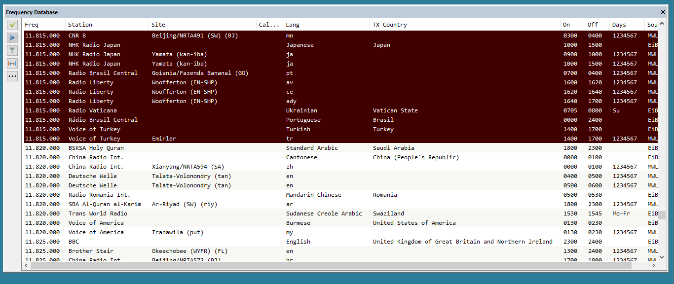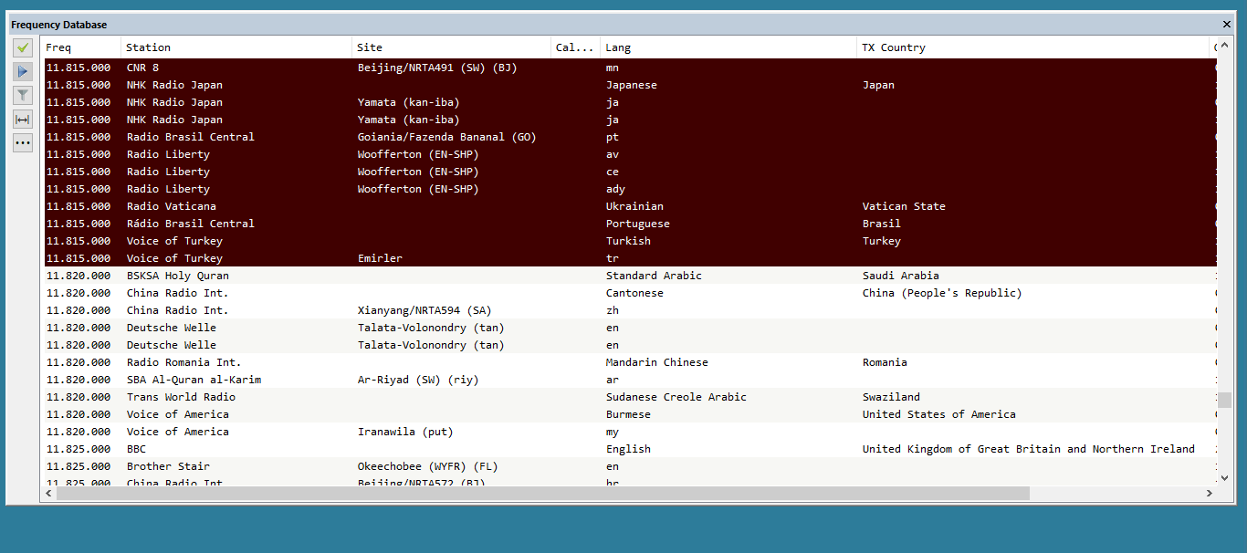 95% of the time (maybe more) does not just give you a list of possible stations, but accurately identifies the exact station, as it can (optionally) automatically filter the displayed station list for time of day (amongst a load of other excellent functions) and tracks frequency of SDRC or vice versa. Also auto-imports up to date lists from all the well-known sources without the need for manual upload, although you can manually add lists too if you wish, like Dan Ferguson's excellent SWBC combined schedules list.