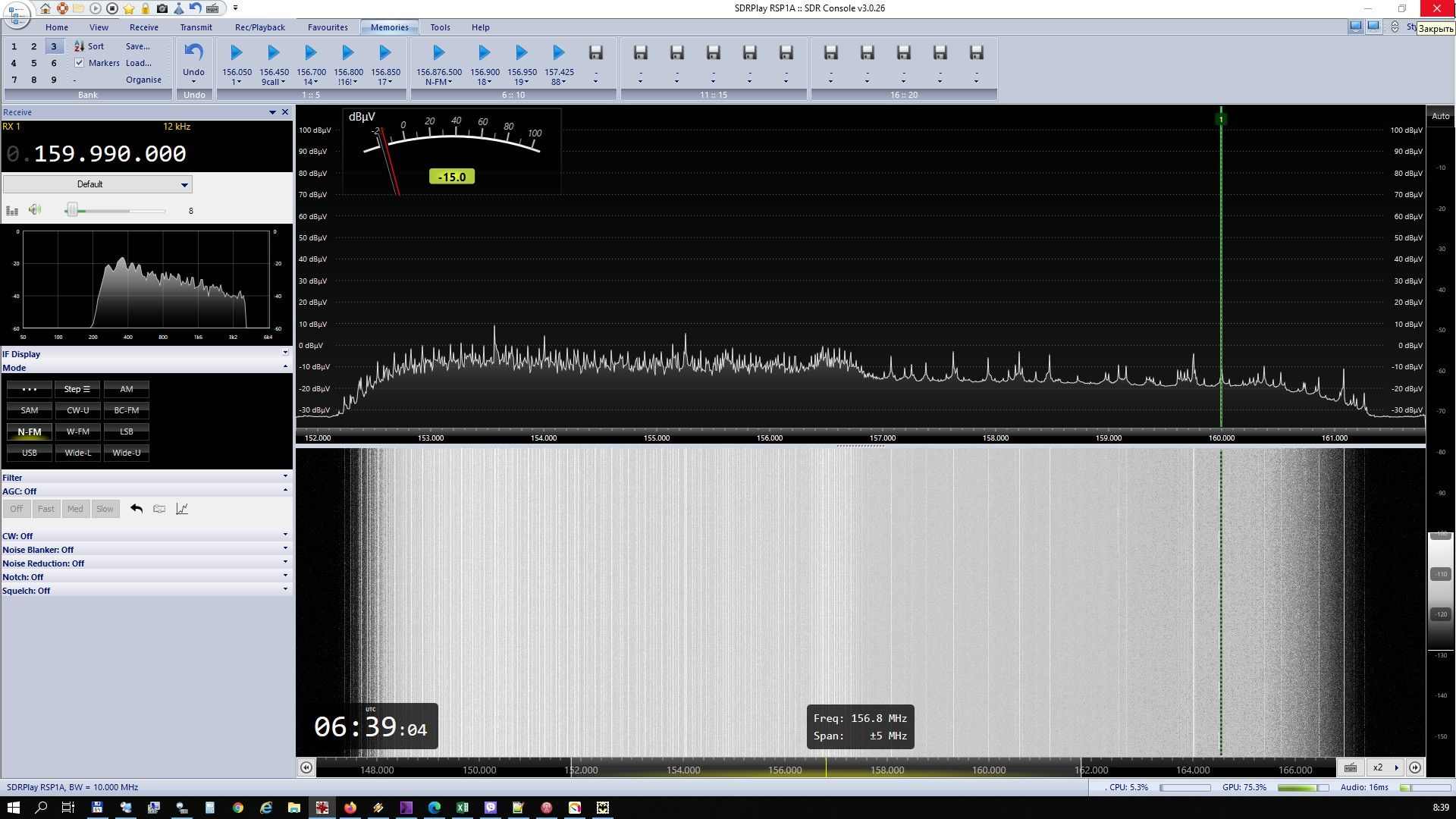 Good day! Installed SDR Console version 3.0.26 along with SDRPlay RSP1A on i9 7900x / 32GB RAM / SSD M2 + HDD / NVidio GT710 / Win2019 Server computer.